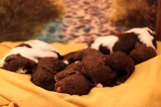Heute Nacht hat Rica ihre Welpen geboren. Nach einer kurzen Hechelphase purzelten ein Welpe nach dem anderen ans Licht der Welt. Insgesamt 3 Rüden und 4 Hündinnen. Alle gesund und munter.